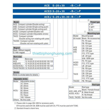 | Pit tông: 12,16, 20, 25, 32, 40, 50, 63, 80, 100, 125, |